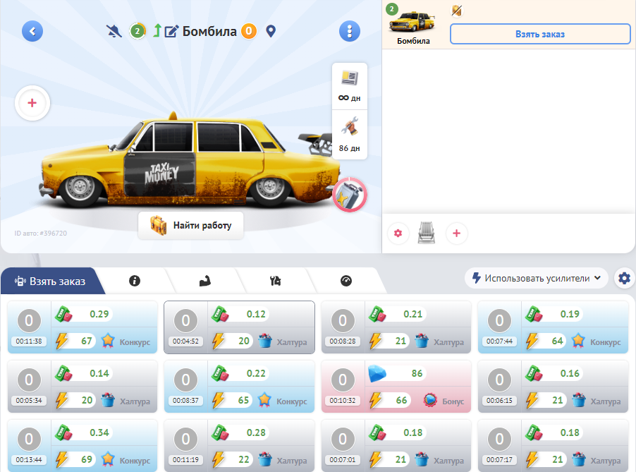 Основной смысл игры - устроиться работать таксистом в городе, выполнять виртуальные заказы на виртуальном такси и получать вполне реальные деньги!