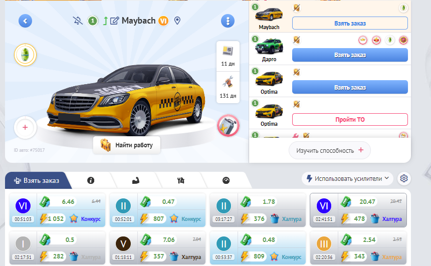 Полученные средства вы можете вывести из игры на все виды счетов и электронные кошельки, или улучшить свое такси, чтобы выполнять еще больше заказов.