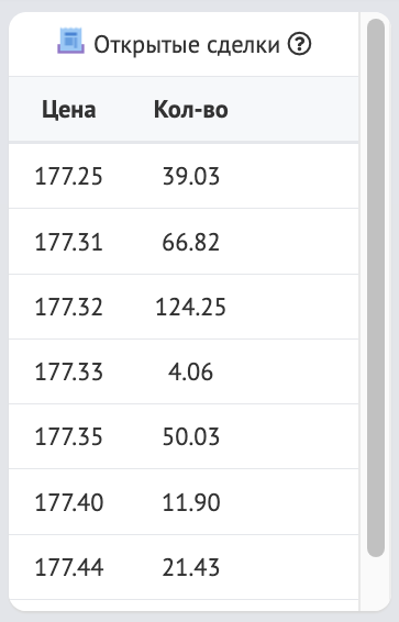 В блоке “Открытые сделки” отображаются все текущие открытые сделки игроков.