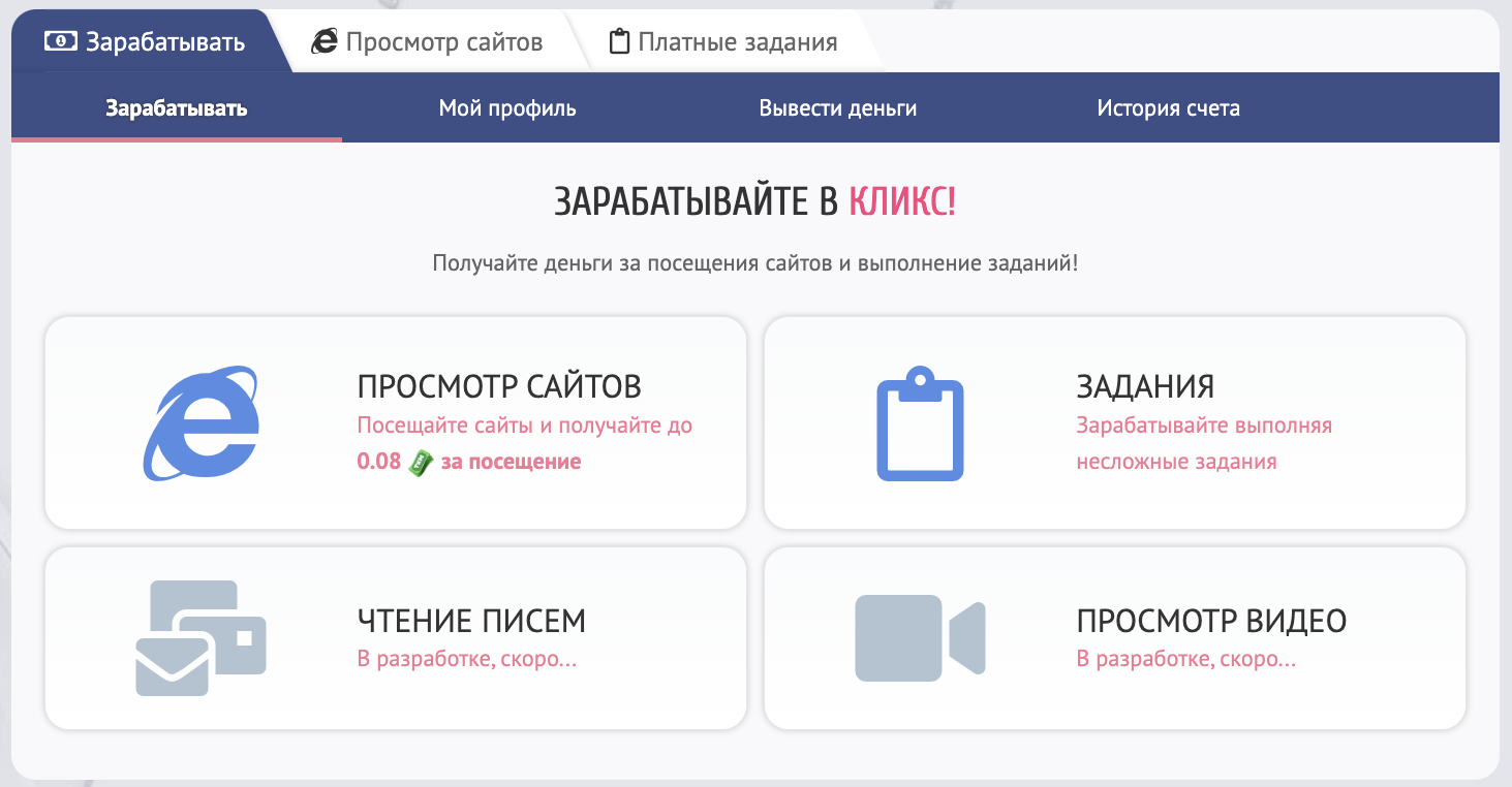 В нашей системе КЛИКС можно легко заработать реальные деньги. К вашим услугам несколько методов заработка: