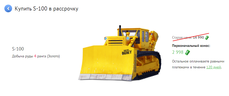 После подтверждения оплаты бульдозер появится в гараже. Если у Вас сейчас недостаточно средств, помните про возможность покупки в рассрочку.