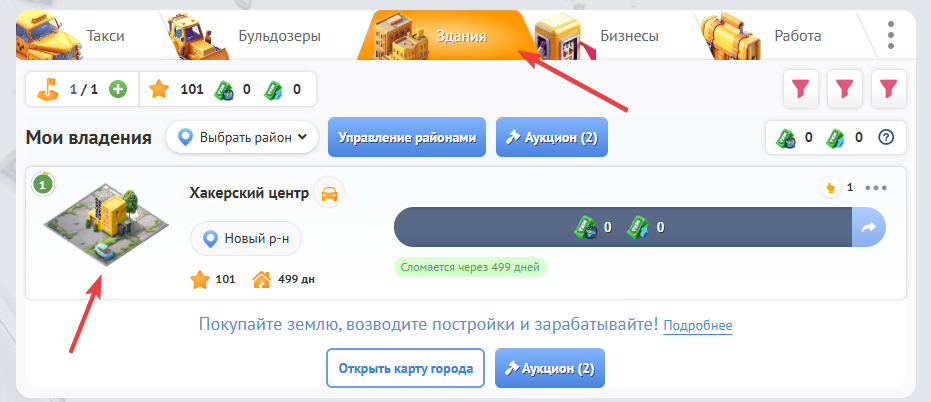 Также количество бонусов, которое дает Вам здание, Вы можете увидеть на вкладке Здания