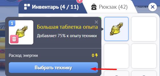 В вашем инвентаре доступен выбор усилителей, которые помогут улучшить характеристики техники. Для использования усилителя выполните следующие шаги: